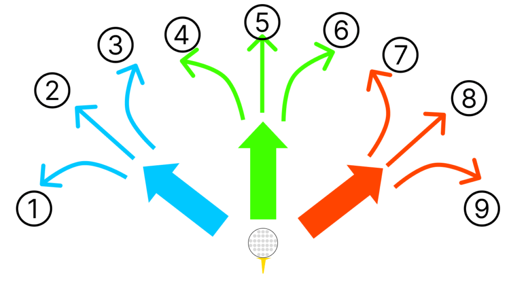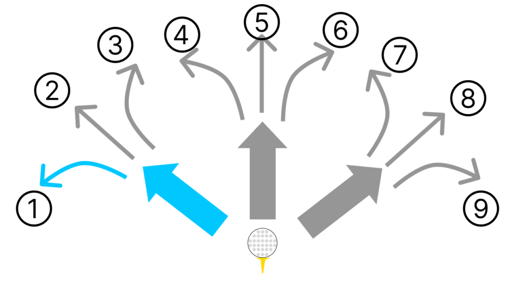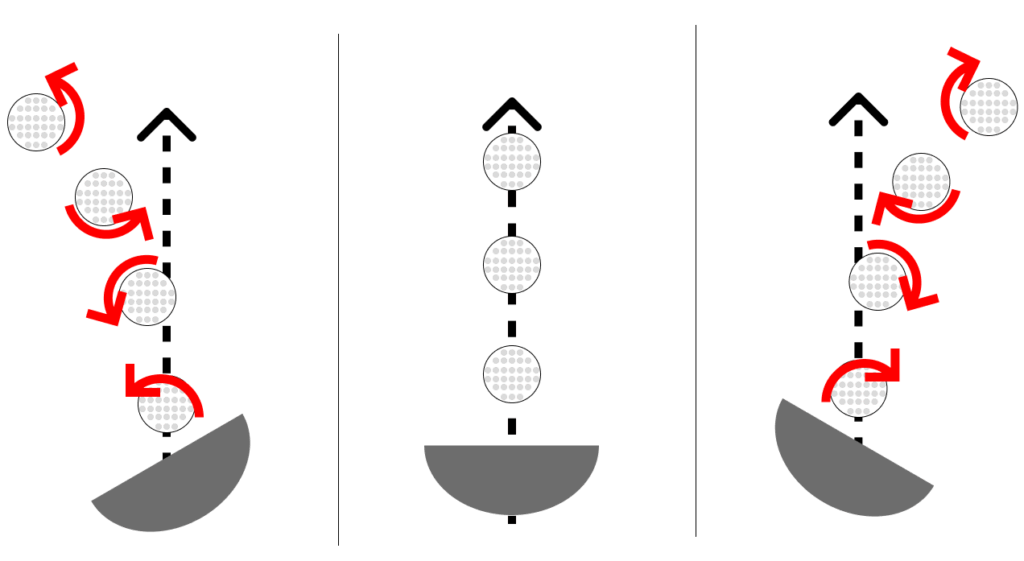 - スイング軌道に対するフェースの向きによって曲がる方向が決まる