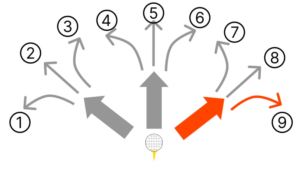 なので、上図でいうスライス(⑥or⑨)とプッシュアウト(⑧) は、