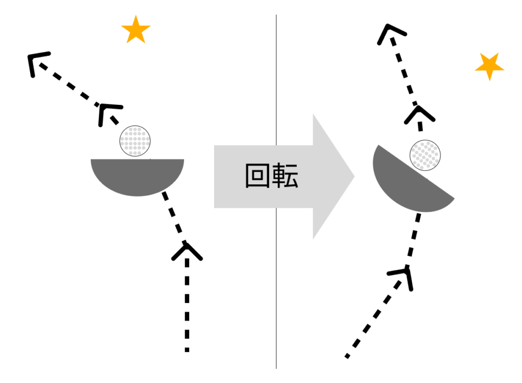 その軌道よりもフェースが開いていればスライス回転がかかるからです。