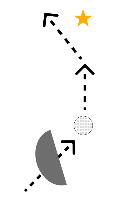 スイング軌道(黒点線)に対してフェース向きが…