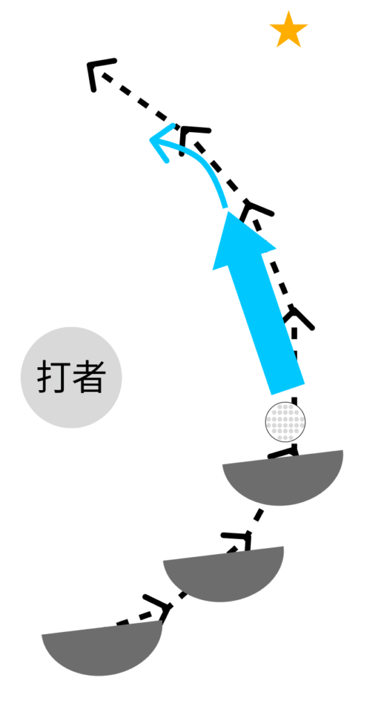 「ターゲット方向に打ち出して、右に曲がる」